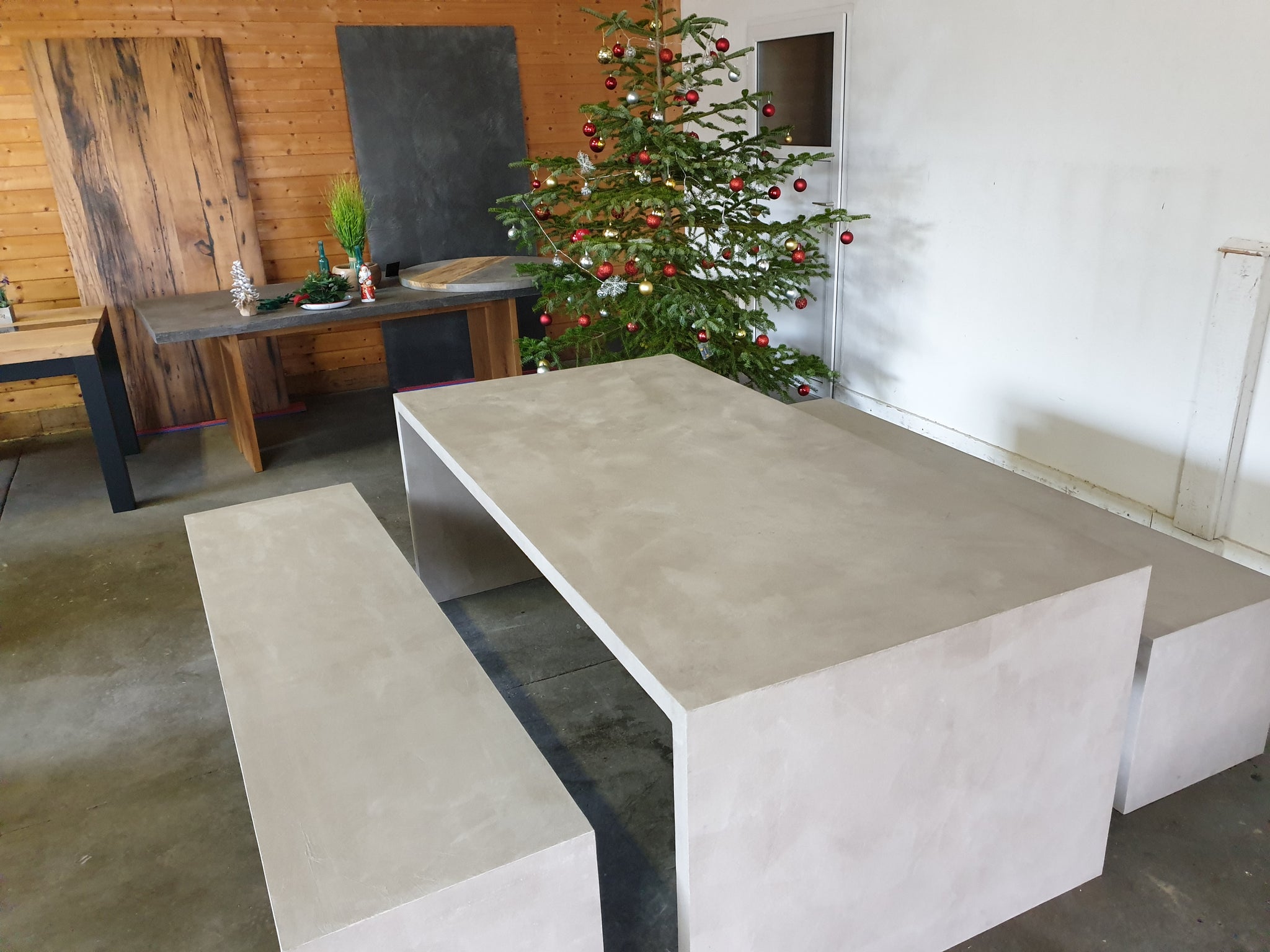 Dieser Esstisch inklusive Bänken passt durch sein schlichtes Design und ruhiger Optik zu fast jeder Einrichtung.